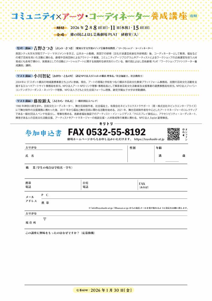 | 会場 | 穂の国とよはし芸術劇場PLAT 創造活動室B |