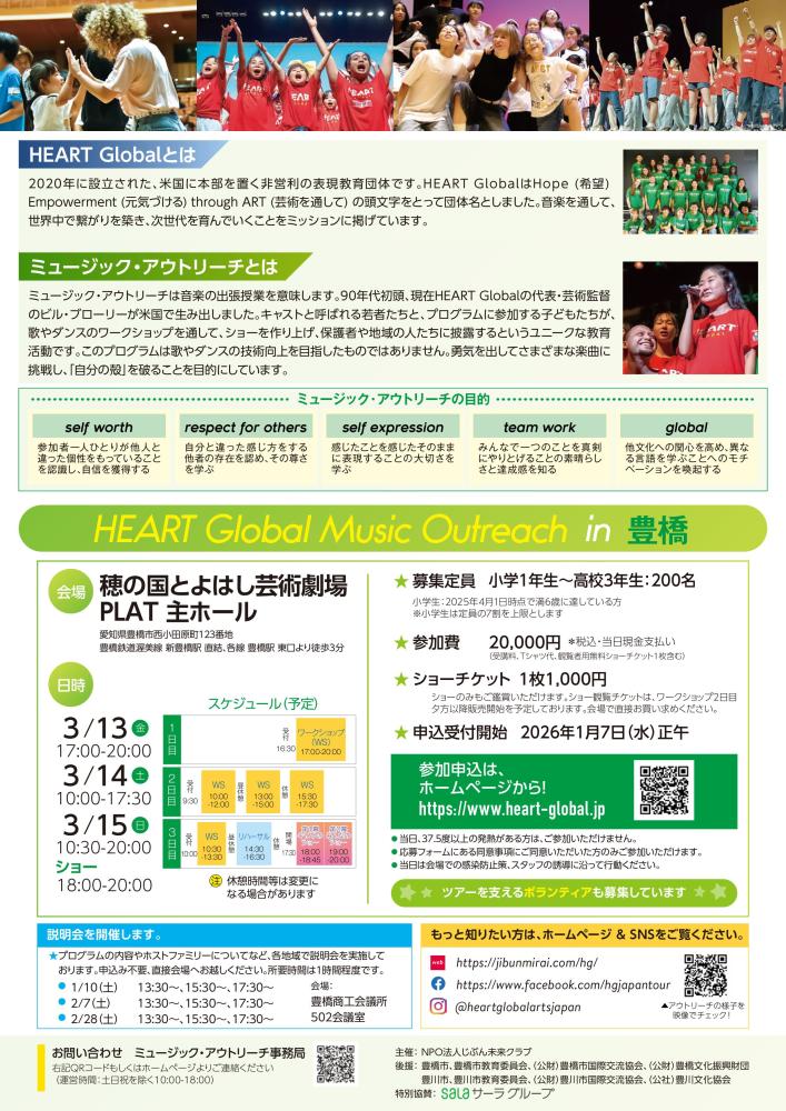 多国籍のHEART Globalメンバーと小中高生が3日間で作り上げる音楽ショーです。