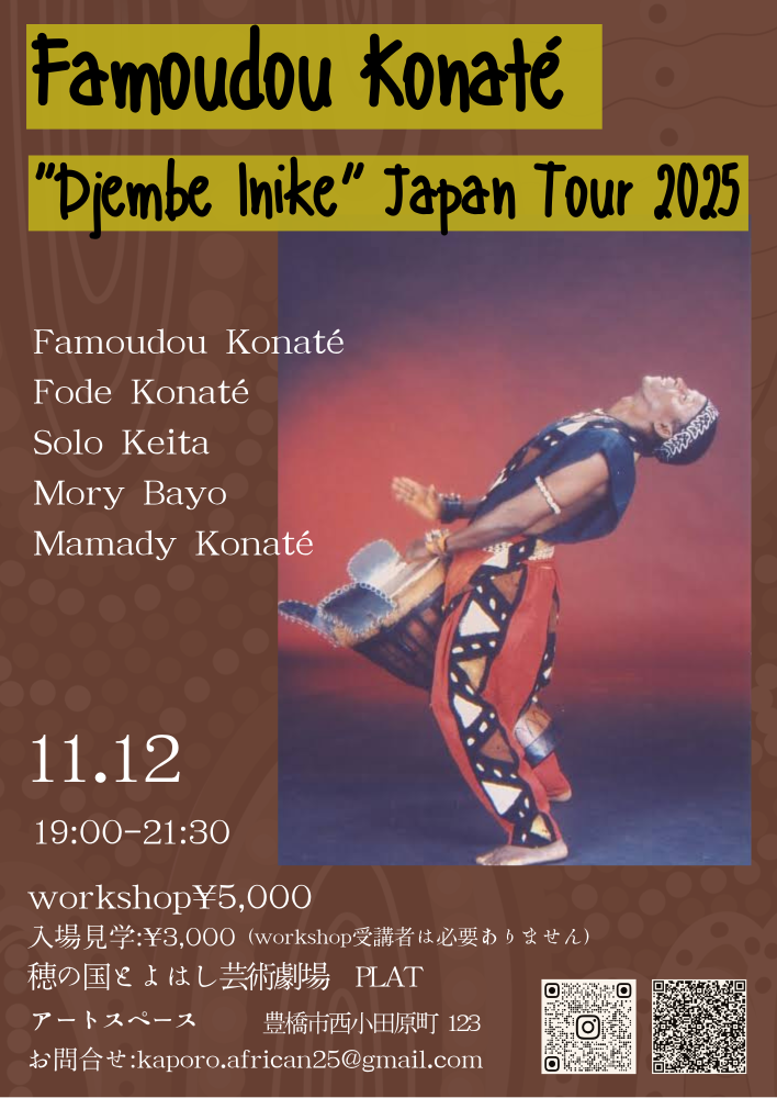 Famoudou Konaté(ファムドゥ・コナテ)、Fode Konaté、Solo Keita、Mory Bayo、Mamady Konaté スタッフ:三好東曜、近藤公昌、近藤朋実、坂井ジョージ、矢野修平 |