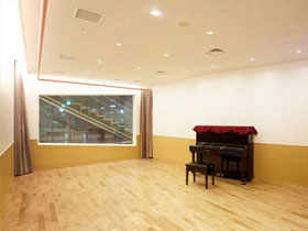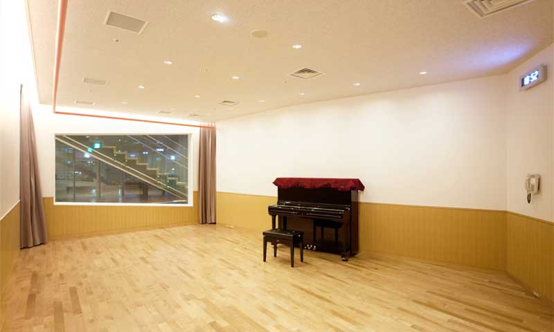 アップライトピアノが常設されているアコースティックな音楽練習室。ワークショップ、研修、会議等にも使用可能です。