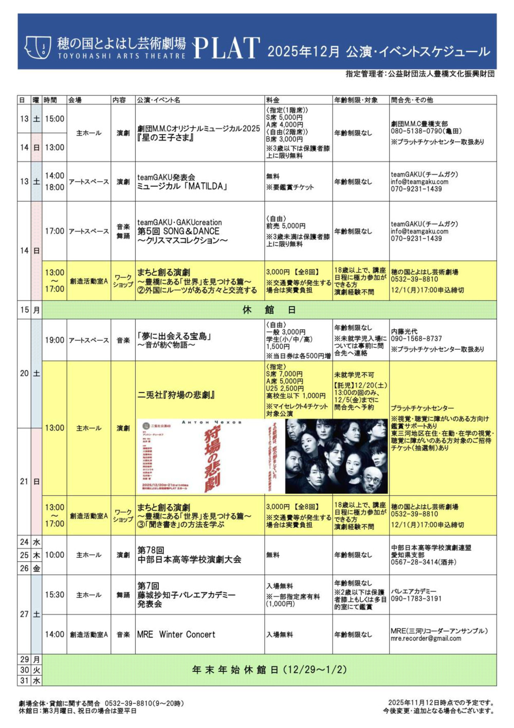 2025年12月スケジュール